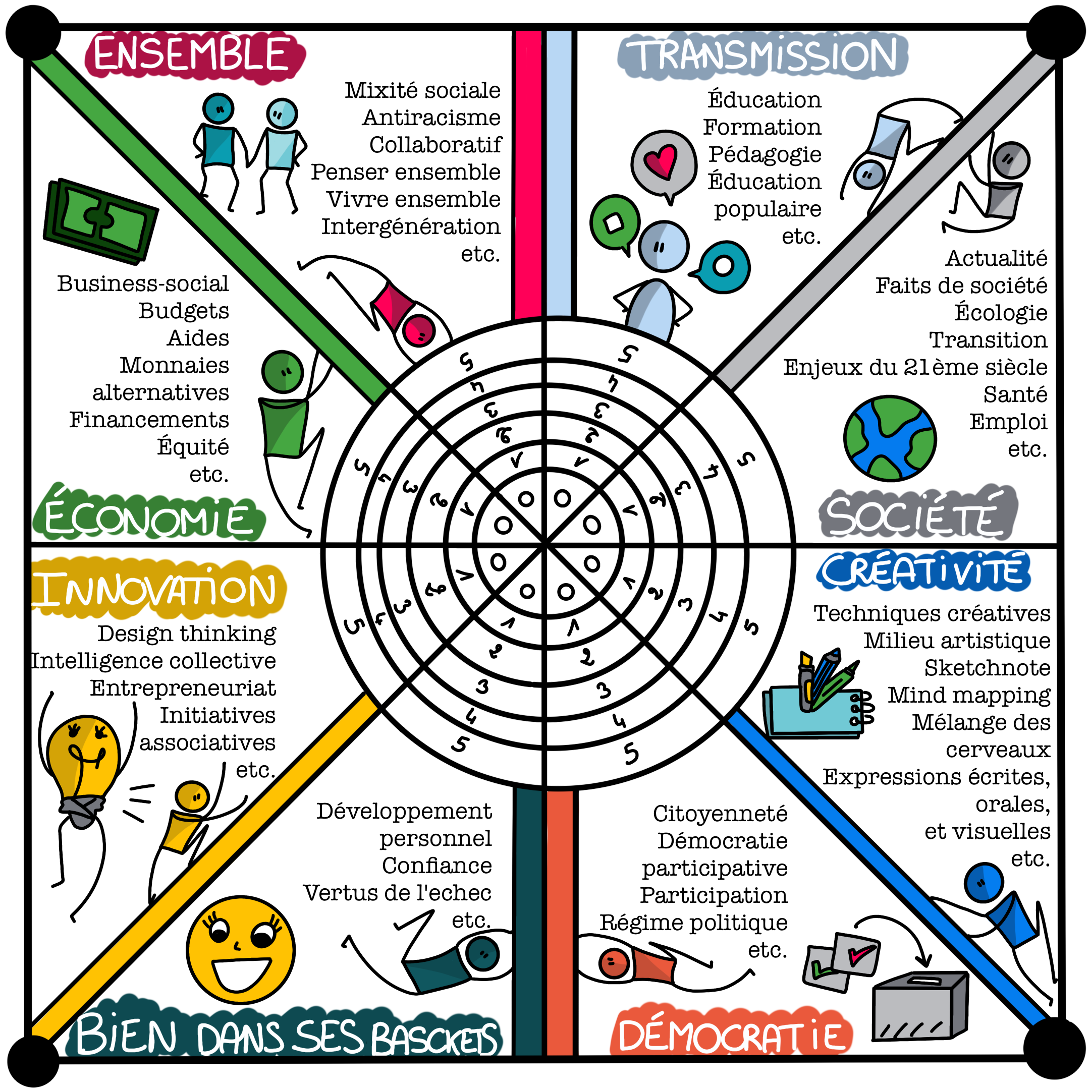 Laissez-vous guider au gré des images pour questionner votre rapport au lancement et vécu de projets collaboratifs. Chaque illustration représente une question clé sur laquelle vous devrez vous positionner. Elle renvoie vers des étapes du livre sur lesquelles trouver des informations nécessaires pour vous aller plus loin.